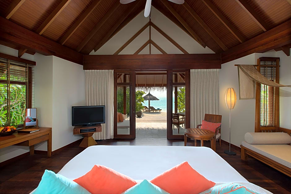 Spacious 2-bedroom villa features views of the Indian Ocean, a large outdoor bathroom and an additional bathroom. Also includes a sundeck, sun loungers and tropical gardens that lead to the beach. Infants and children are allowed in this villa type. Additional benefits: - Villa host services will be provided.