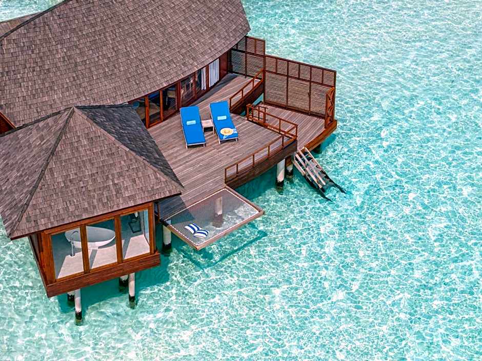 After a day of lounging on the pristine sands or exploring the vibrant coral reefs, guests can unwind at the resort’s stunning infinity pool. Overlooking the azure waters of South Malé Atoll, this adults-only oasis offers the perfect spot for a relaxing swim or simply soaking in the breathtaking views. Imagine sipping a cool drink from the poolside bar as you watch the glorious Maldivian sunset paint the sky in shades of orange and pink—a truly picture-perfect moment that will stay with you long after your vacation ends.