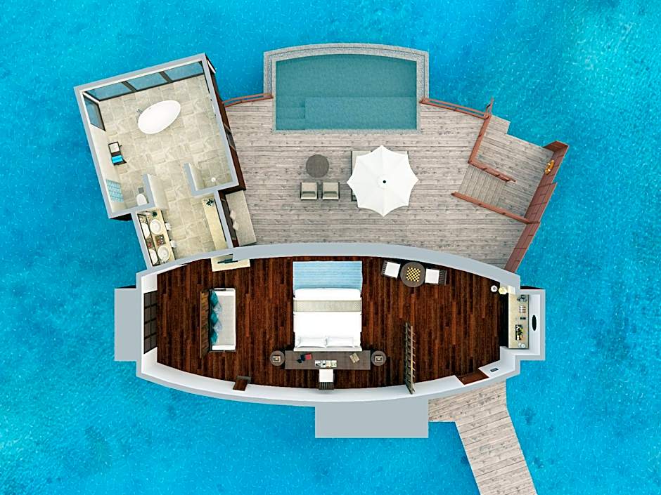 Villa features a bedroom with sliding doors which lead out to a private pool. It has floor-to-ceiling glass panels in the bathroom, terrace with 2 loungers, sun umbrella and daybed. The villas are equipped with a flat-screen TV and a Nespresso coffee machine. The private bathroom comes with a bathtub, Grohe rainshower and bathrobes. Infants and children are allowed in this villa type. Life jackets are available. Additional benefits: - Villa host services will be provided.